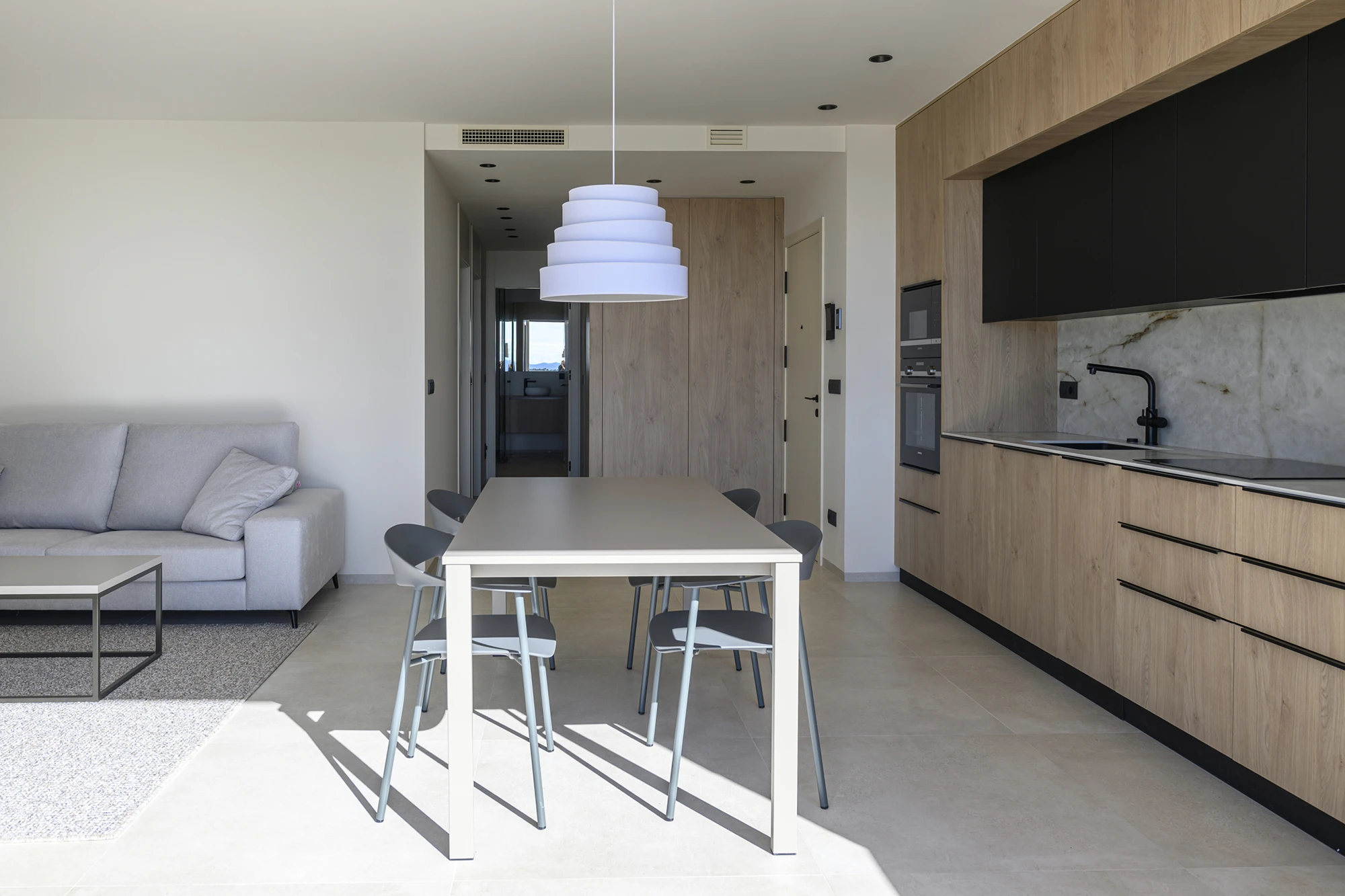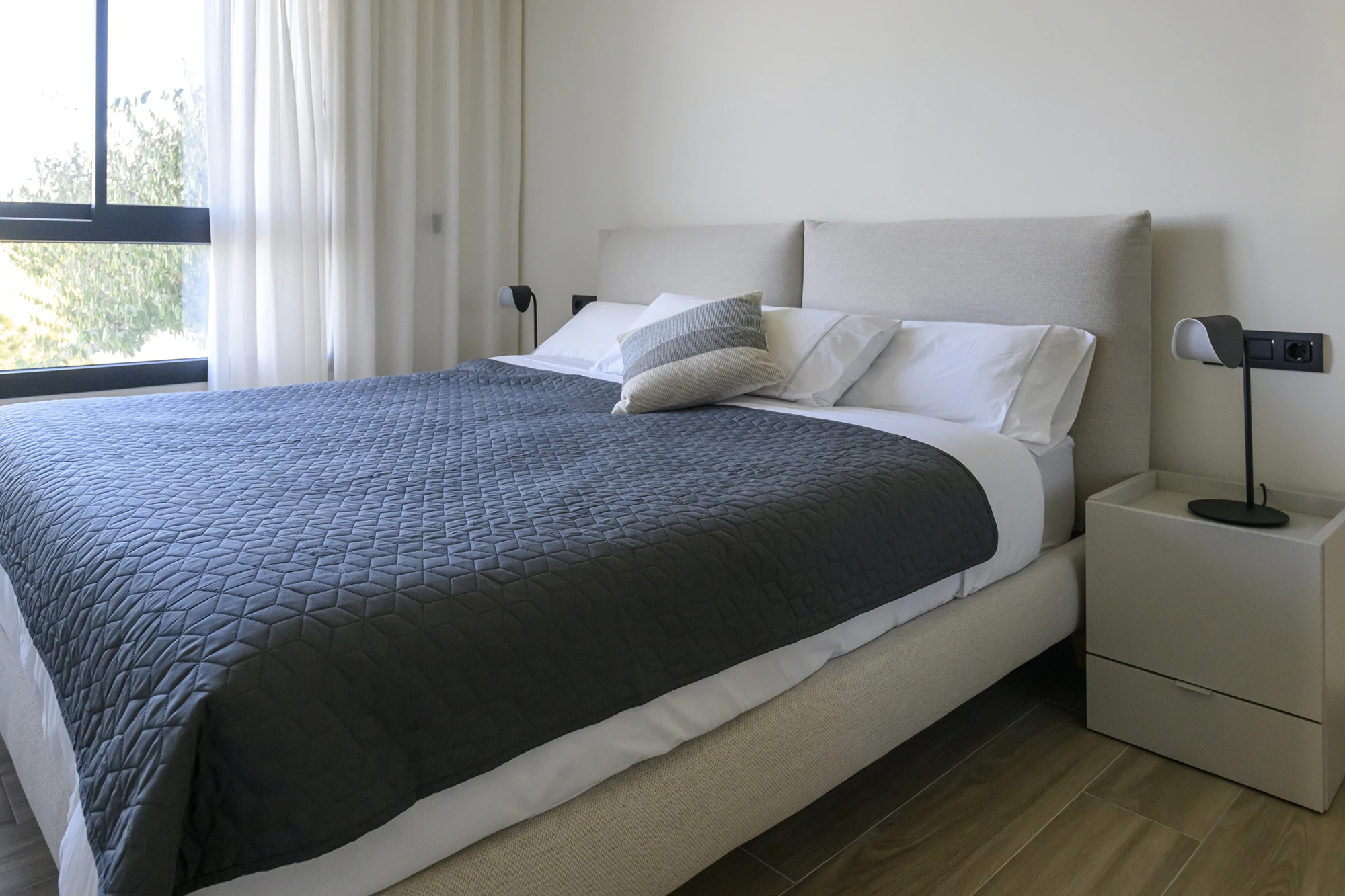 These modern flats feature spacious, light-filled interiors, carefully designed to convey tranquillity and balance. Each room reflects the serene essence of this exclusive community, where contemporary design and simplicity create a unique ambience. In addition, they have a large terrace ideal for enjoying the Mediterranean climate and living every day in connection with nature.