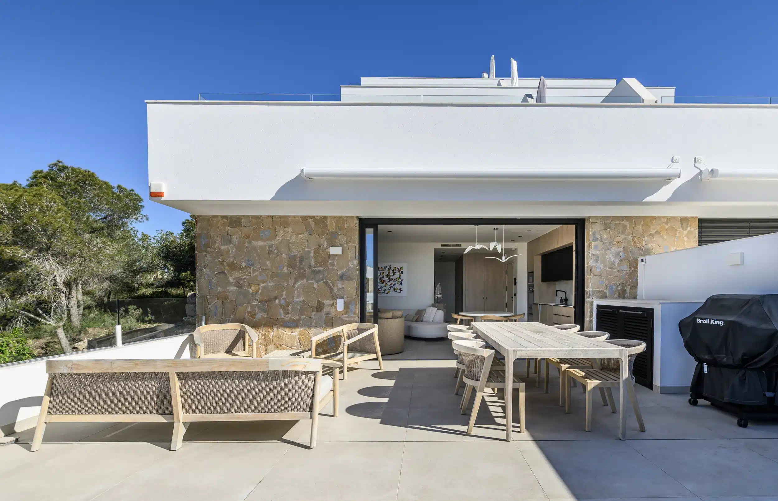 La vivienda, de 480 m2 útiles, tiene una acogedora distribución con todas las estancias comunicadas. La villa dispone de 3 dormitorios y 3 baños. Además, integra una amplia terraza con vistas al corazón de Las Colinas Golf & Country Club.